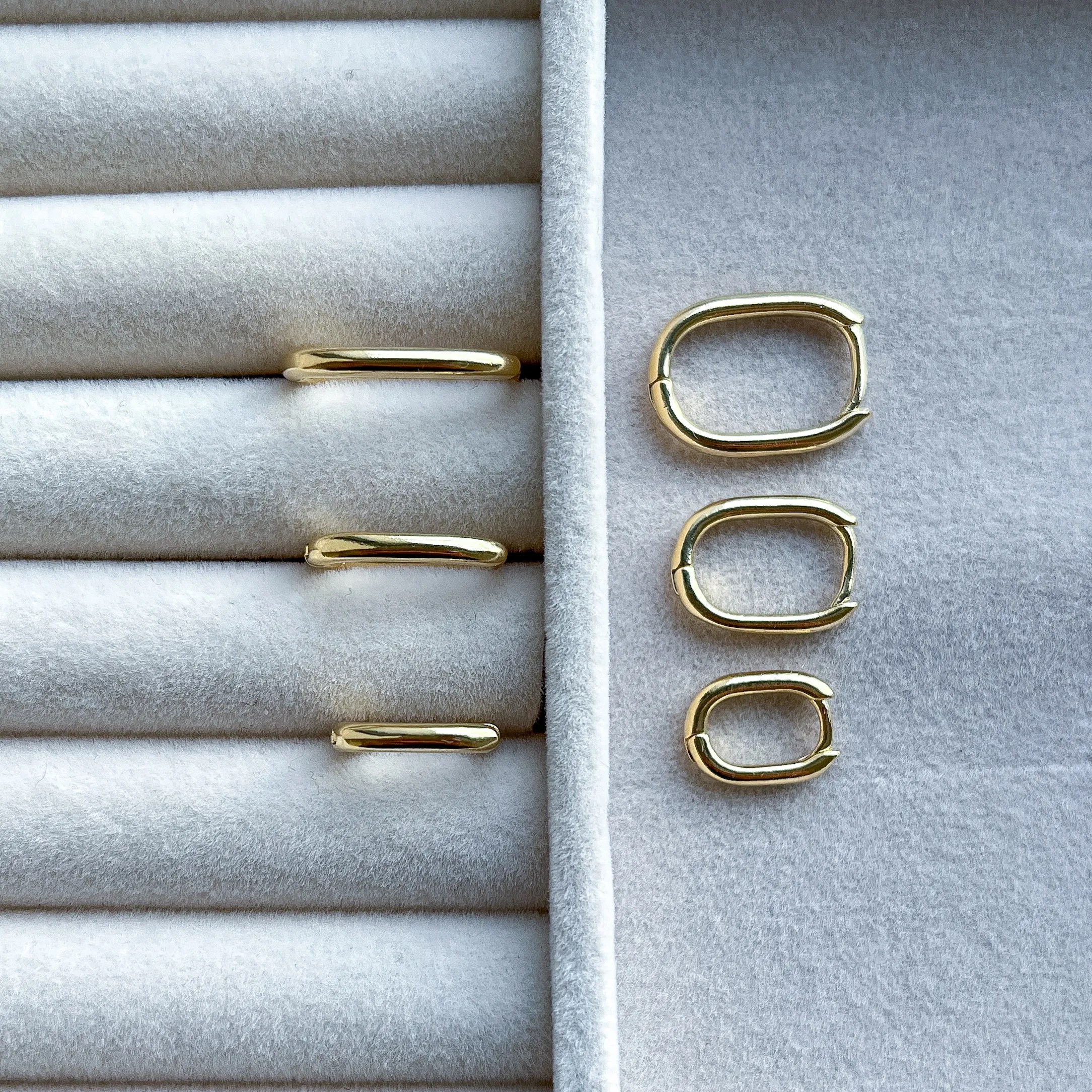 Trio de Argolas Oval Minimalista – Banho Ouro 18k